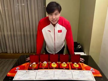 让我们先来看看覃海洋在这次亚锦赛上的惊人战绩。从男子50米、100米到200米蛙泳,他包揽了所有蛙泳个人项目的金牌,展现出绝对的统治力。更令人振奋的是,在男子4×100米混合泳接力和4×200米自由泳接力中,他与队友默契配合,再添两金。